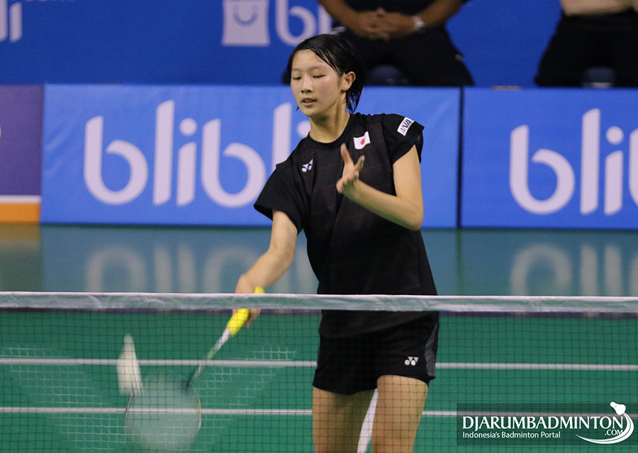 Momoka Kimura (Jepang) Mengembalikan Shuttlecock