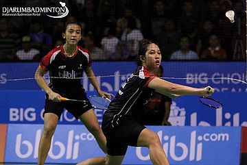 Febriana Dwipuji Kusuma/Ribka Sugiarto (Indonesia) Mengembalikan Shuttlecock
