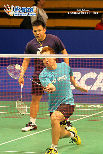 Thien How Hoon/Yao Han (Malaysia) saat berlatih di Istora Senayan