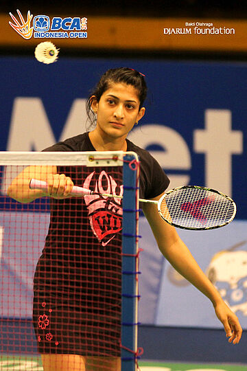 Ashwini Ponnappa (India) saat menunggu giliran untuk berlatih di Istora Senayan