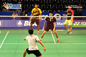 Chong Wei Feng (Malaysia) saat berlatih bertahan melawan tiga temannya