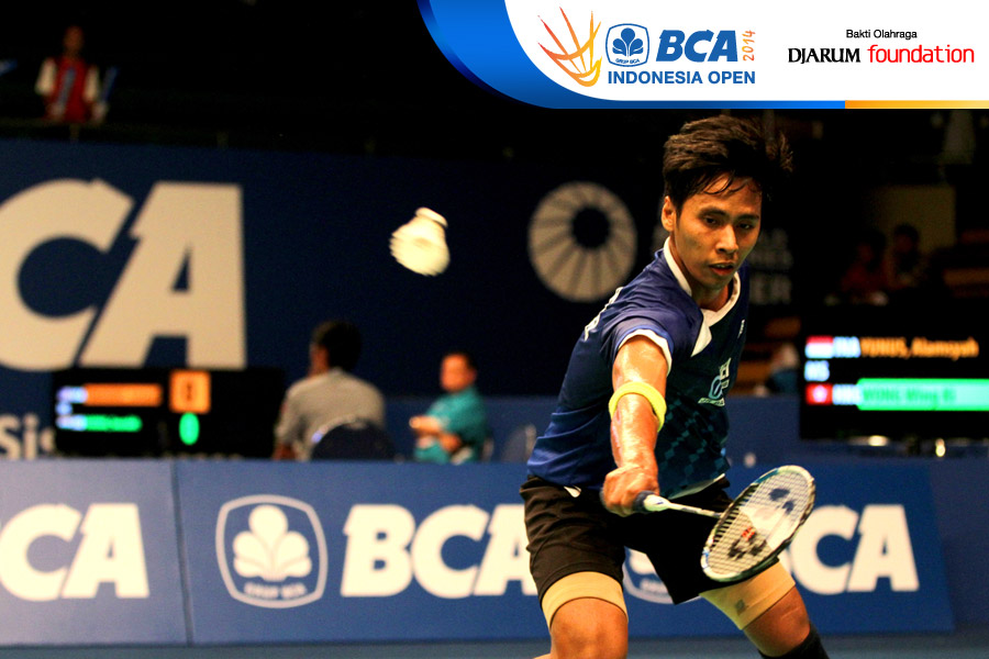 Alamsyah Yunus (Indonesia) berhasil menghadang pengembalian dari Wong Wing Ki (Hongkong)
