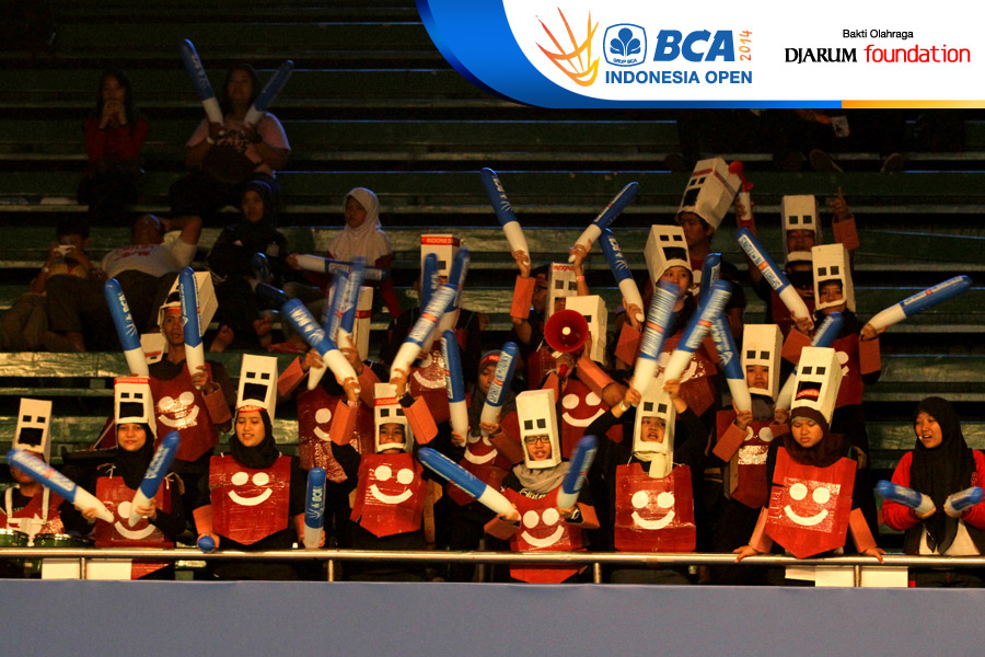 Sejumlah supporter saat mendukung para pemain Indonesia yang bertanding di BCA Indonesia Open Super Series Premiere 2014