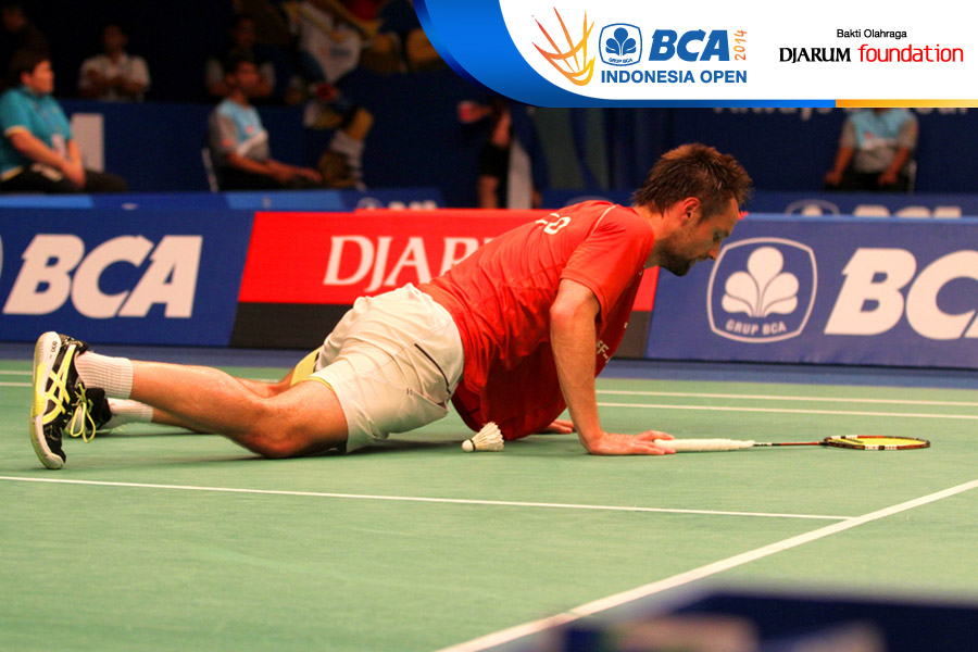 Christian Lind Thomsen (Denmark) harus jatuh bangun menghadapi serangan-serangan yang dilepaskan M. Arif Abdul Latif (Malaysia)