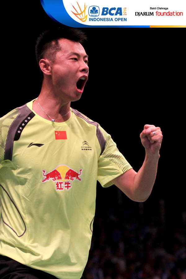 Ekspresi Xu Chen (China) saat berhasil mencuri poin dari pasangan Korea Selatan