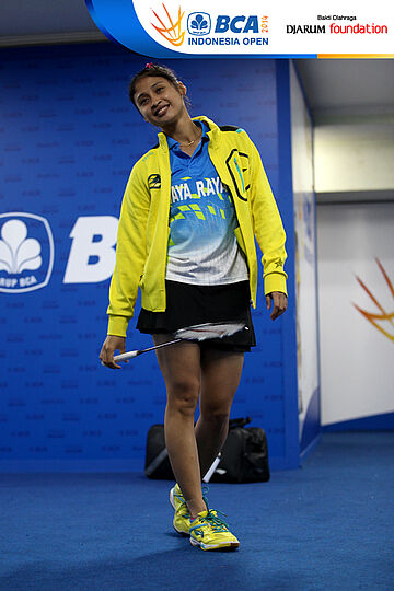 Rizki Amelia (Indonesia) melakukan pemanasan sebelum bertanding