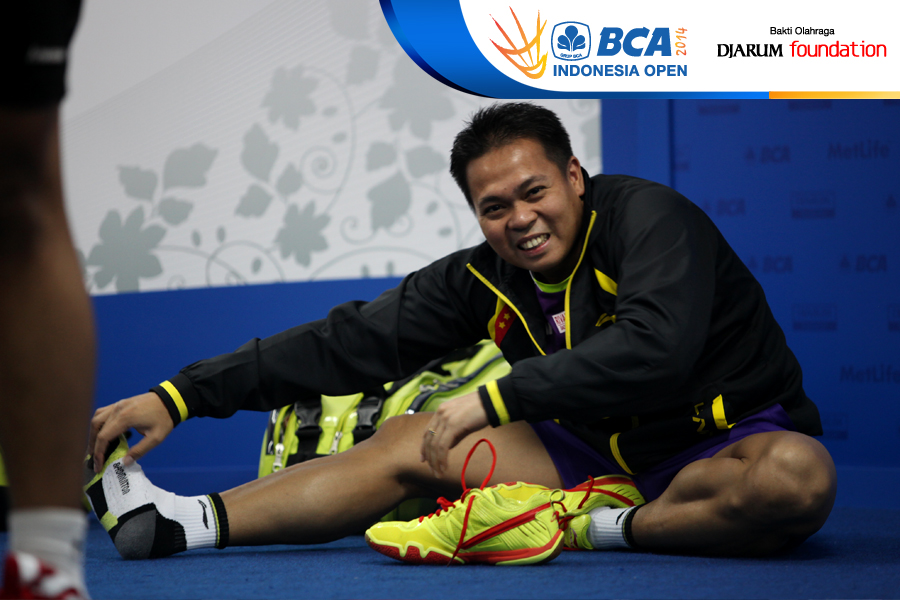 Markis Kido (Indonesia) sedang melakukan pemanasan sebelum bertanding