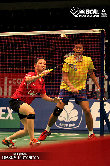 Praven Jordan/Gloria Emanuelle (Indonesia) saat berlatih.