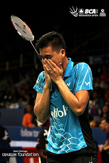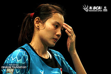 Ekspresi Annisa Saufika (Indonesia) saat kehilangan poin.