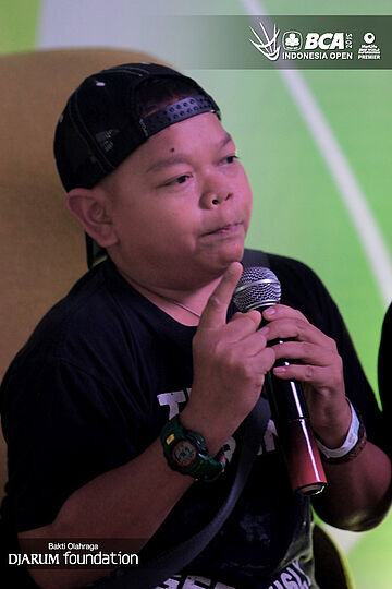 Ony Syahrial, menjawab pertanyaan wartawan di area meet and greet BCA Indonesia Open Super Series Premier 2015.