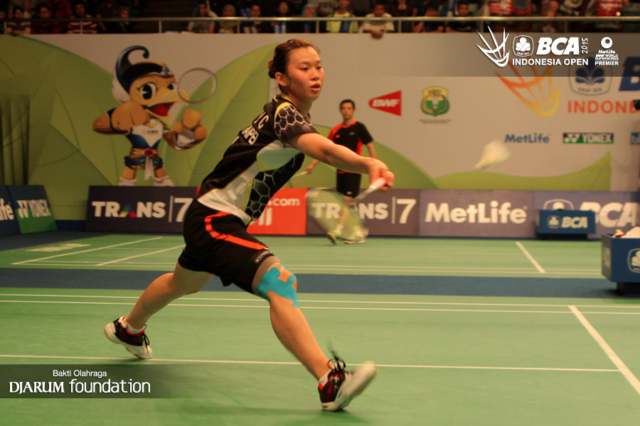 HsuYa Ching (Taipe) mengembalikan shuttlecock kearah Shindu P (India).