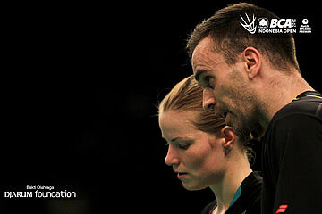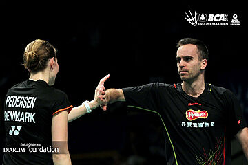 Kekompakan Joachim Fischer/Christinna Pedersen (Denmark) di lapangan.