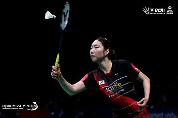 Sung Ji Hyun (Korea) bersiap melepaskan serangan