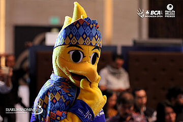 Yopppy Rosimin, Inge Setiawati, Ricky Subagja, dan Budi Darmawan photo bersama maskot BIO