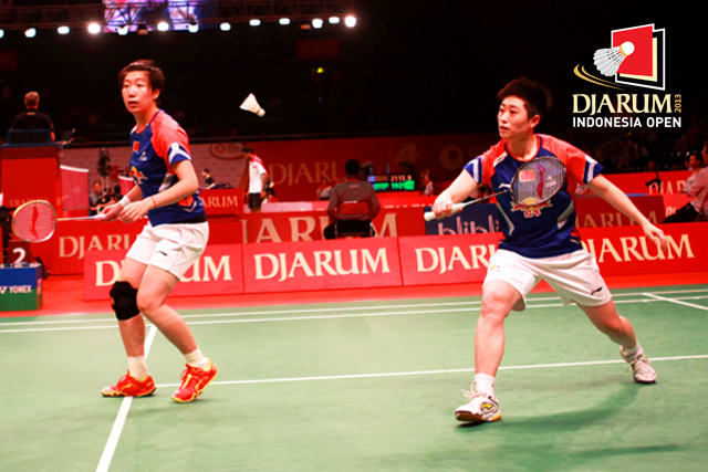 Hendra Setiawan (Indonesia) meminta pergantian shuttlecock.