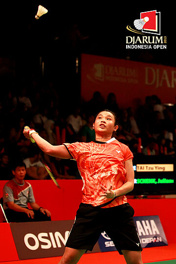 Tai Tzu Ying (China Taipei) bersiap mengembalikan shuttlecock ke arah Juliane Schenk (Jerman).