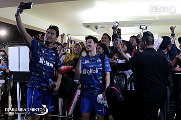 Tontowi Ahmad/Liliyana Natsir (Indonesia) Melakukan Selfie Bersama Para Penggemarnya Usai Bertanding