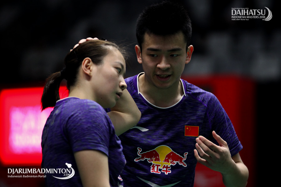 Zheng Siwei/Huang Yaqiong (Tiongkok) Saling Berkomunikasi Di Lapangan