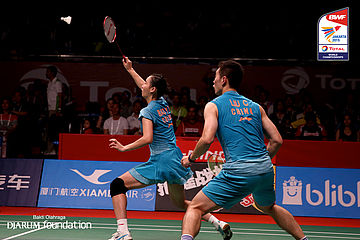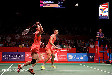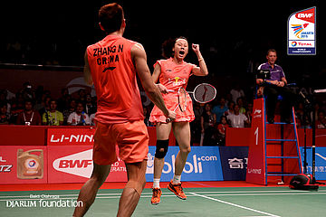 Zang Nan/Zhao Yunlei (CHN) menyambar pengembalian lawan