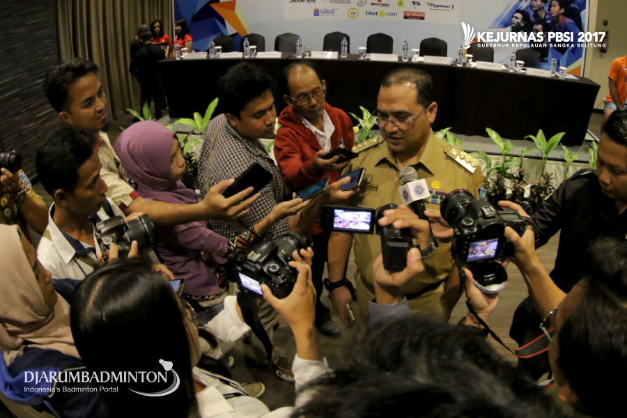 Erzaldi Rosman Djohan (Gubernur Kep. Bangka Belitung) Saat Diwawancara Rekan Media