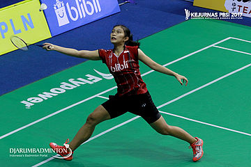 Bellaetrix Manuputty (DKI Jakarta) Menggapai Shuttlecock