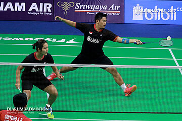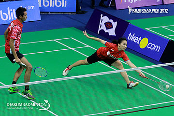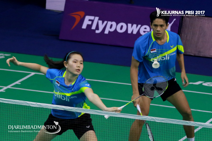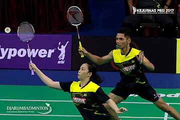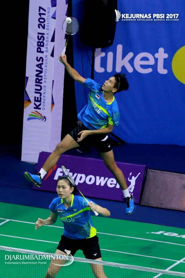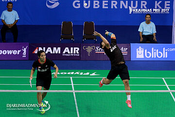 Andika Ramadiansyah/Mychelle Christine Bandaso (Jawa Tengah) Berusaha Menyambar Shuttlecock
