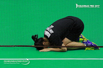 Wulan Cahya Utami Suko Putri (Jawa Tengah) Mengambil Shuttlecock Yang Tersangkut Di Net