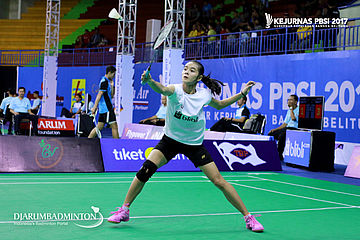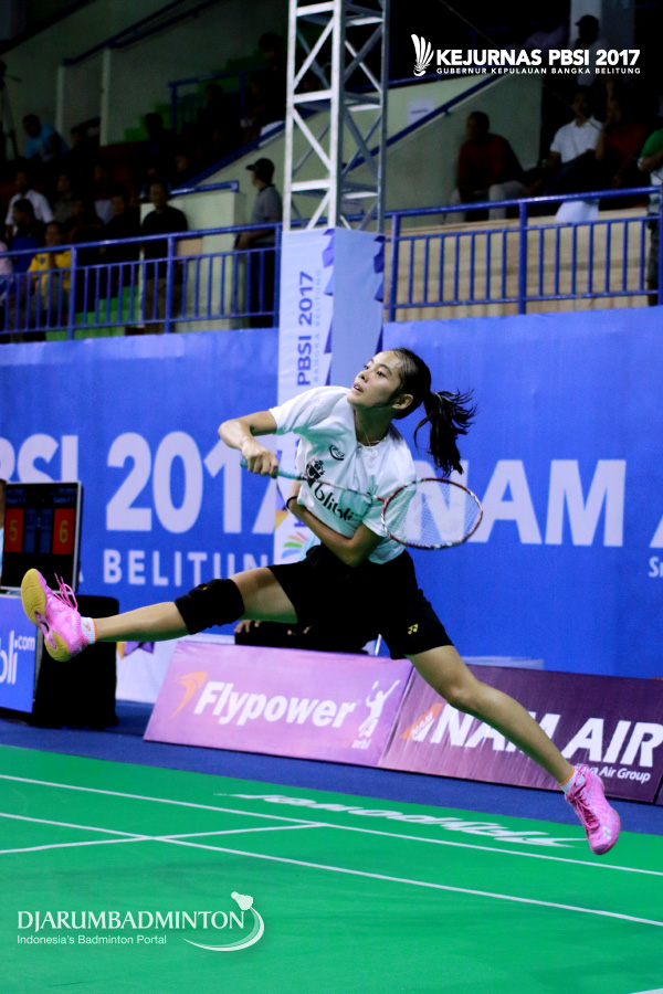 Bening Sri Rahayu (DKI Jakarta) Berusaha Menjangkau Shuttlecock