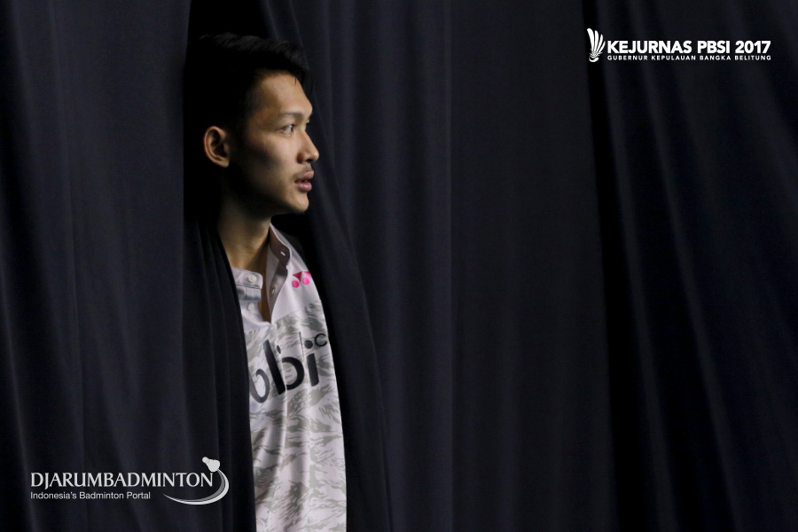 Gatjra Piliang Fiqihilahi Cupu (DKI Jakarta) Terjatuh Saat Berusaha Menggapai Shuttlecock