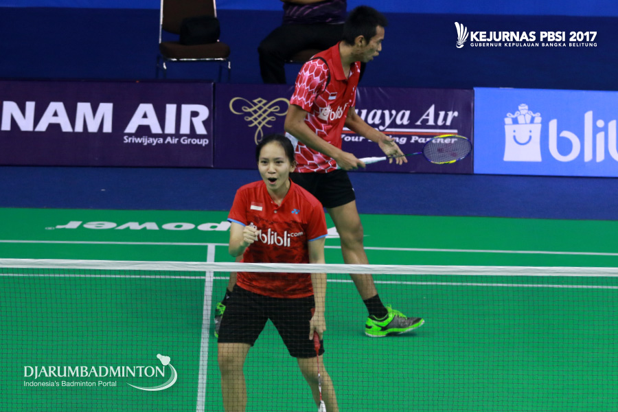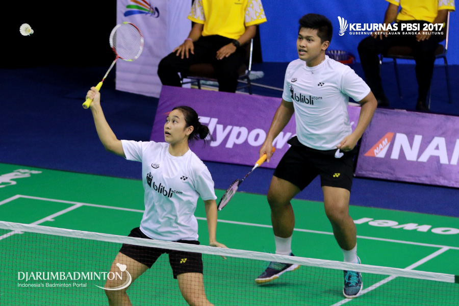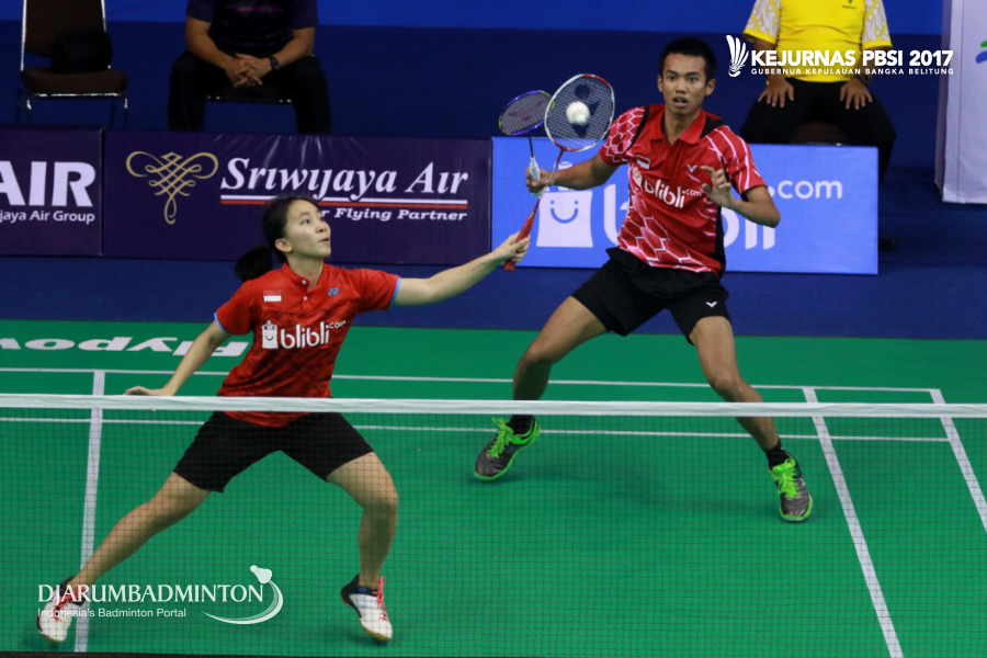 Akbar Bintang Cahyono/Winny Oktavina Kandow (Jawa Tengah/DKI Jakarta) Mengembalikan Shuttlecock