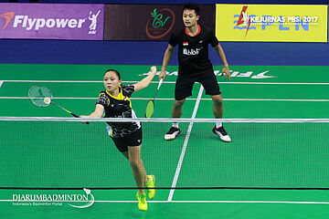 Akbar Bintang Cahyono/Winny Oktavina Kandow (Jawa Tengah/DKI Jakarta) Mengembalikan Shuttlecock