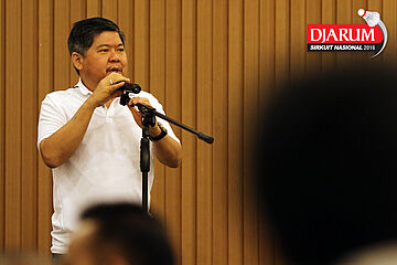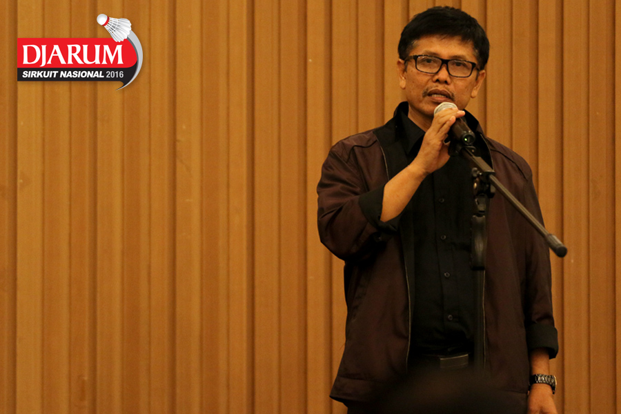 Sambutan Sekretaris Daerah sekaligus Ketua Panitia Pelaksana Djarum Sirkuit Nasional Li-Ning Jawa Barat Open 2016, H. Asep Dedi saat acara Welcome Dinner