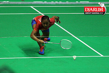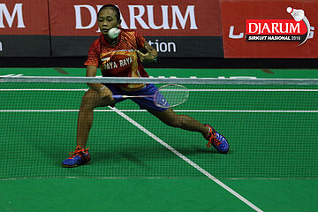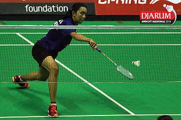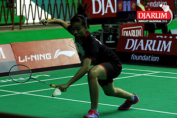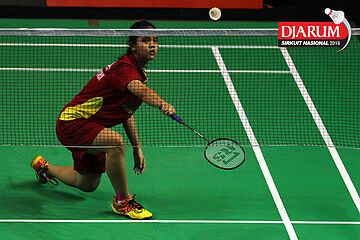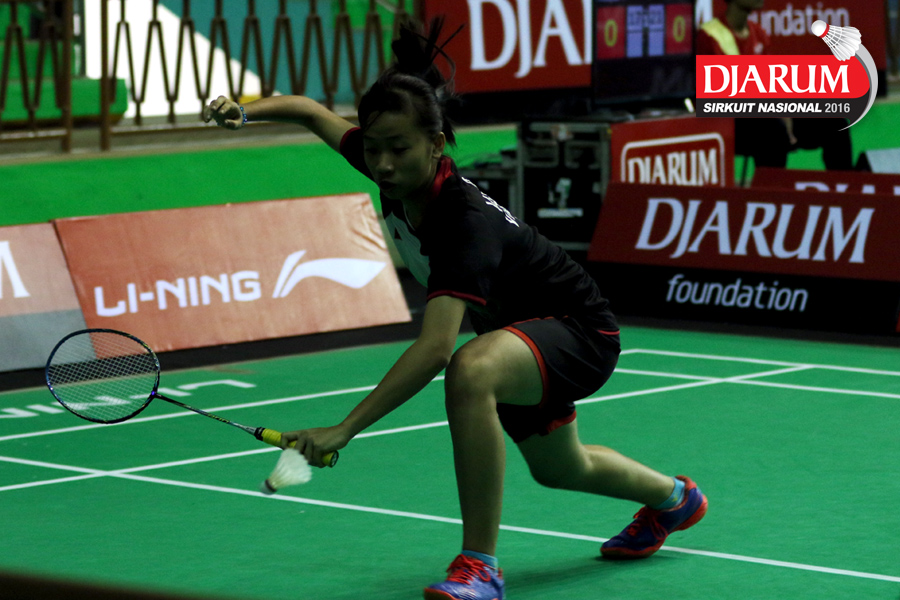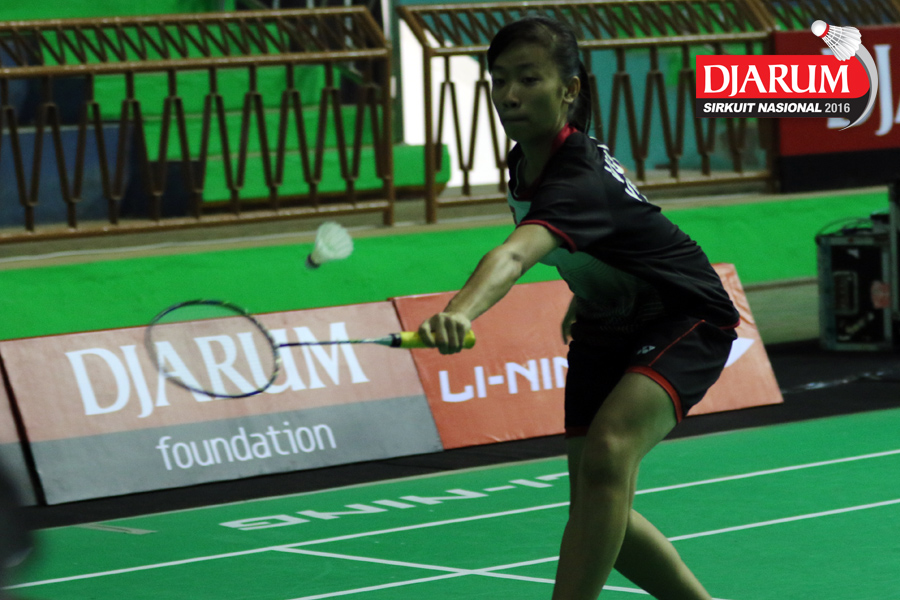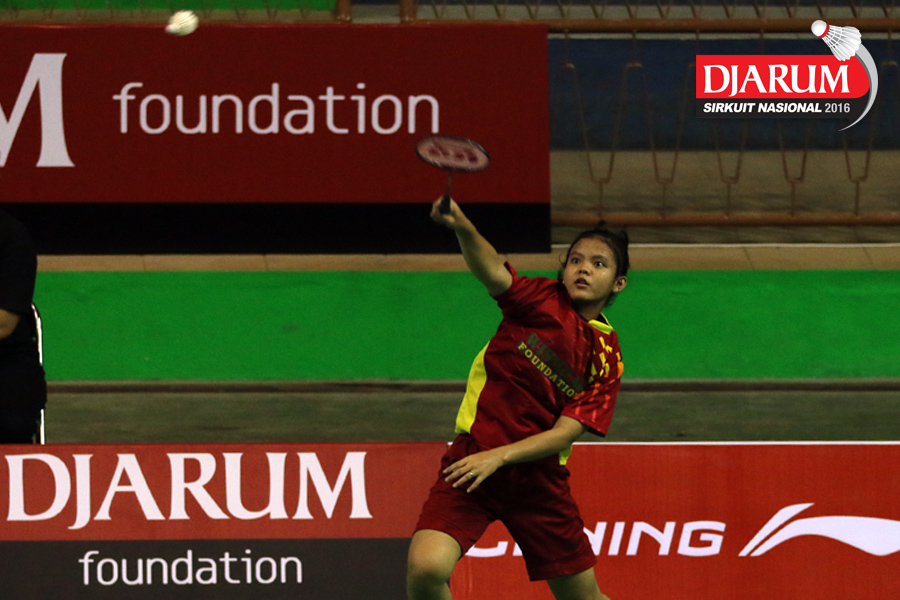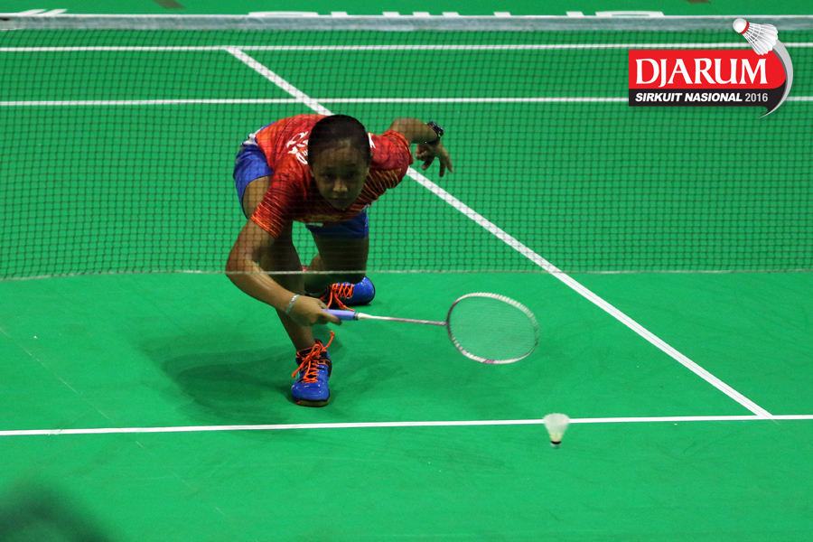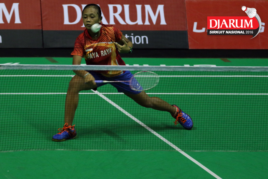 Maria Devanya (Jaya Raya) mengembalikan shuttlecock