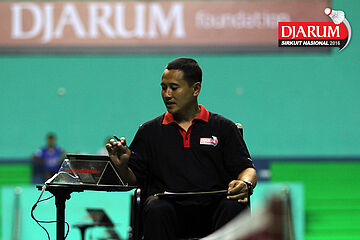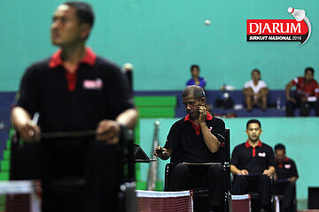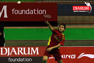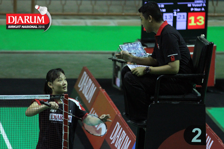 Agatha Imanuela (Djarum Kudus) melakukan protes kepada umpire
