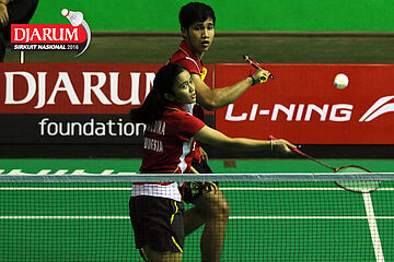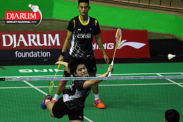 Denny Surya/Aldika Fanisha (Semen Gresik) menyambut pengembalian