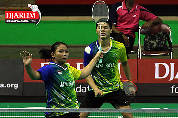 Rian Swastedian/Syifa Fauzia (Jaya Raya) menghadang serangan