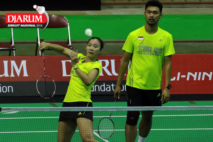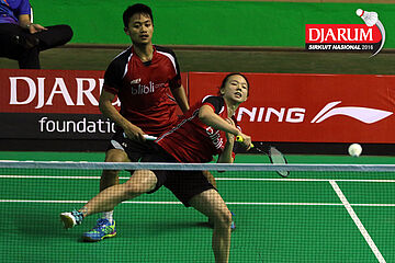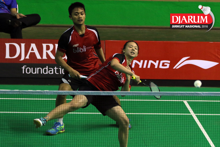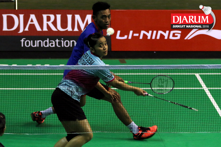 Akbar Bintang/Della Augustia (Djarum Kudus) mengembalikan shuttlecock