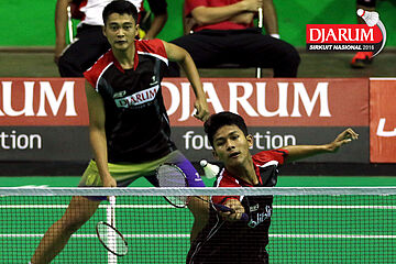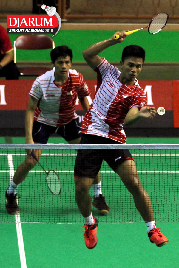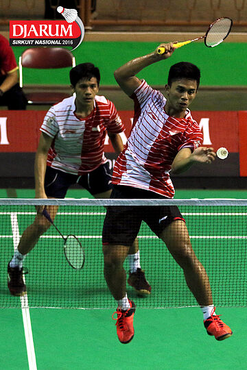 Ardy Nugroho/Ario Bimo (Djarum Kudus) menyambar pengembalian