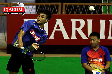 M. Rehan Diaz (Mutiara Cardinal) mengembalikan shuttlecock