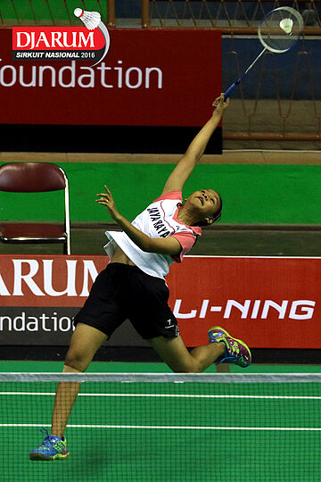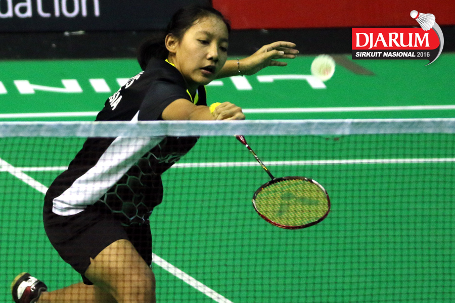 Wulan Cahya (Djarum Kudus) mengembalikan shuttlecock