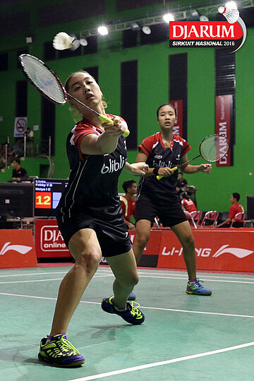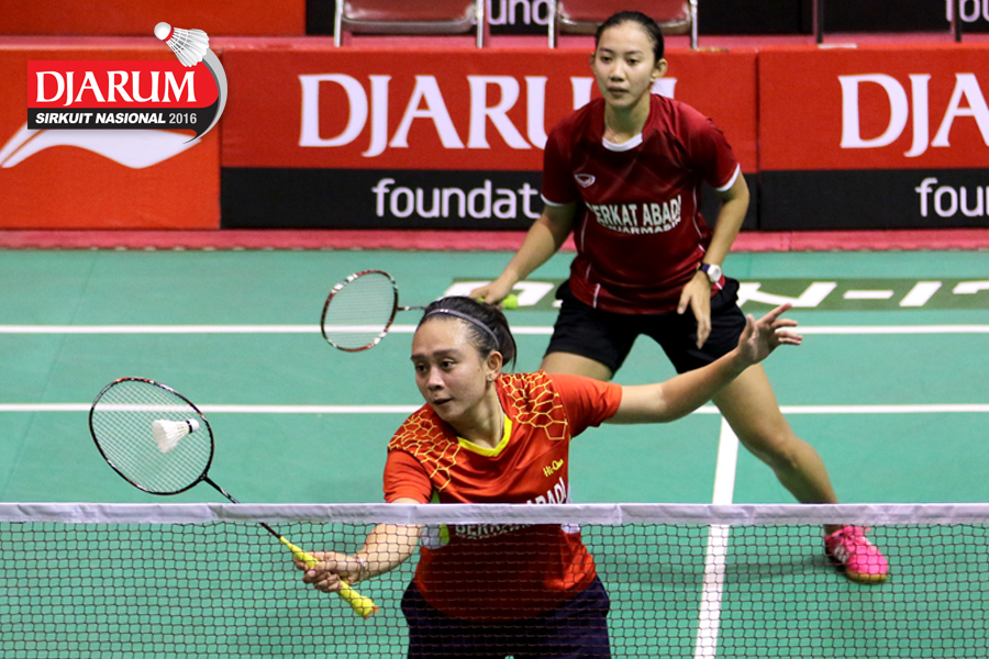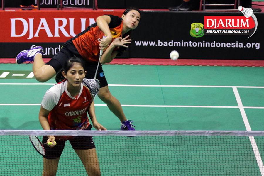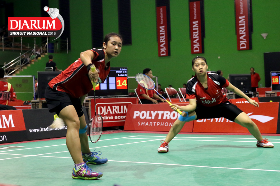 Indah Cahya/Lisa Ayu (Djarum Kudus) Tengah Menghadang Serangan.