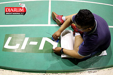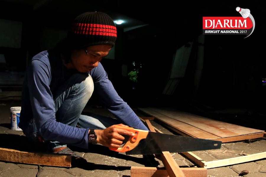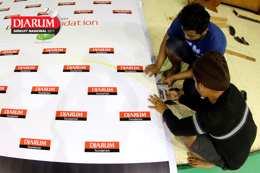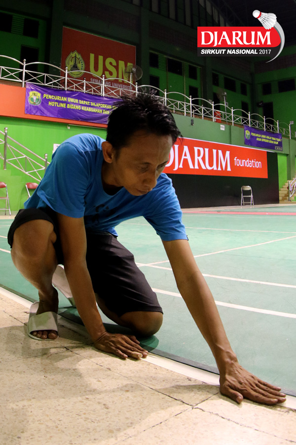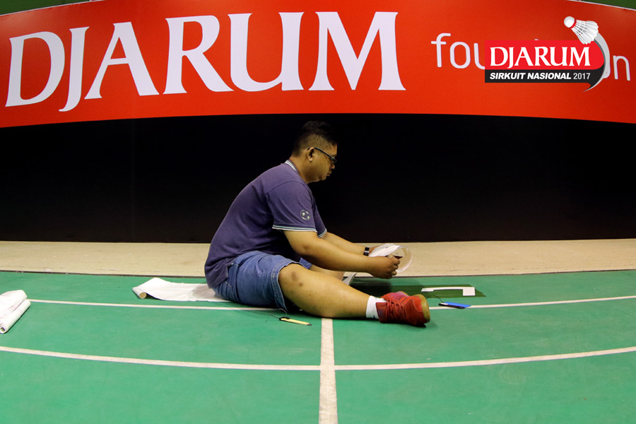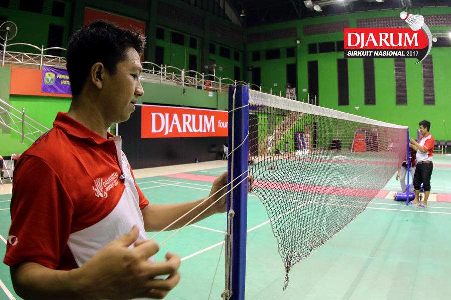 Salah Satu Petugas Saat Menyiapkan Atribut Djarum Sirkuit Nasional Li-ning Jawa Tengah Open 2017