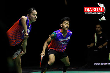 Renaldi Samosir/Hediana Julimarbela (Exist) Mengembalikan Shuttlecock