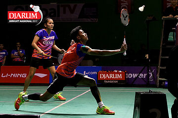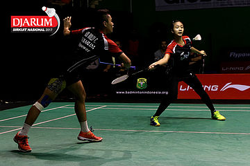 Leo Rollycarnando/Metya Inayah Cindiani (Djarum Kudus) Mengembalikan Shuttlecock