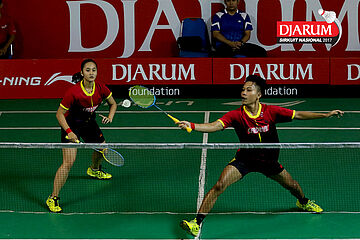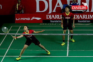 M Robby Darwis/Monika Insany (Mutiara Cardinal Bandung) Mengembalikan Shuttlecock