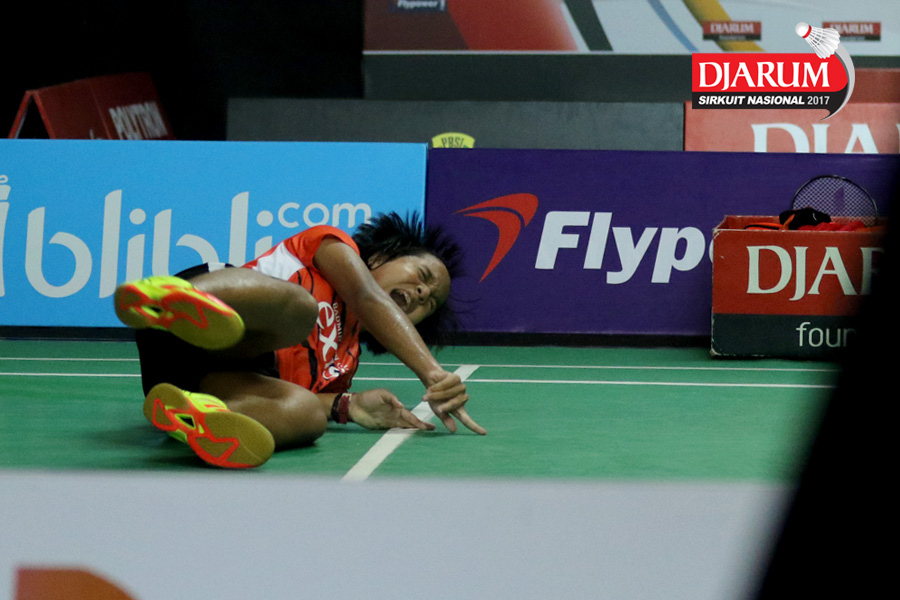 Jesica Moeljati (Shamrock Medan) Terjatuh Saat Berusaha Menggapai Shuttlecock