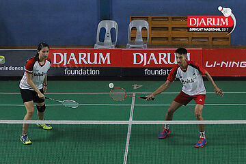Reinard Dhanriano/Maretha Dea Giovani (Mutiara Cardinal Bandung) Mengembalikan Shuttlecock
