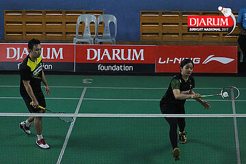 M. Enrico Giralda Harsari/Annisa Fitriani Harsari (Nikko Steel Malang) Mengembalikan Shuttlecock