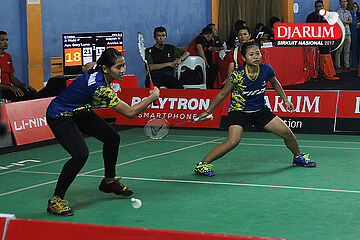 Aldira Rizki Putri/Ayu Gary Luna Maharani (Djarum Kudus) Mengembalikan Shuttlecock