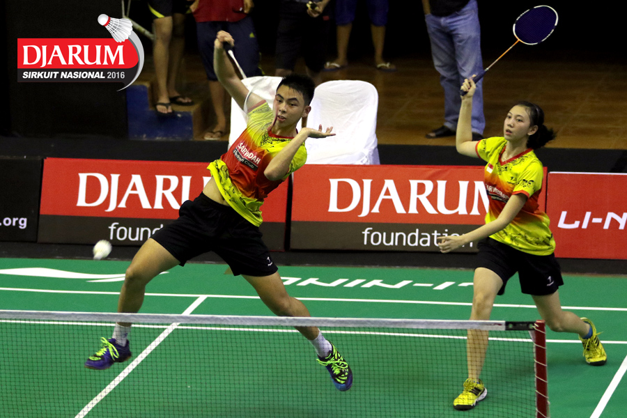 Billy Jonathan/Brigita Marcelia (CWIBC/Jaya Raya) bersiap menyambut pengembalian